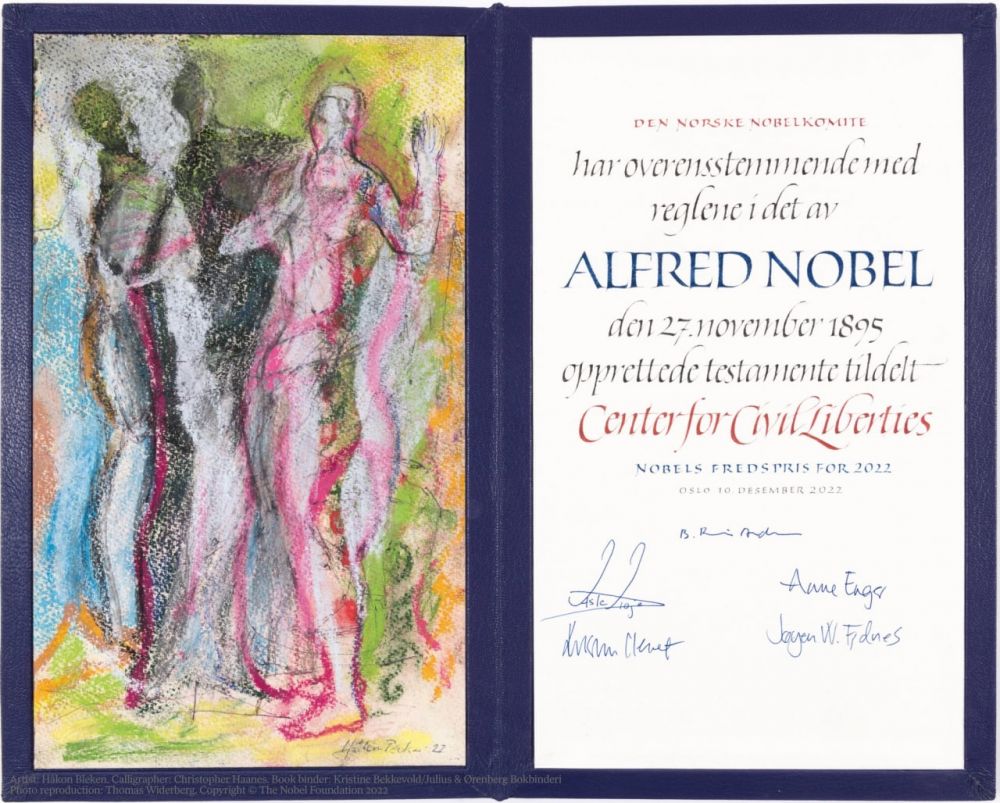 Олександра Матвійчук, українська правозахисниця, перша українка, яка як керівниця організації «Центр Громадянських Свобод», отримала Нобелівську премію миру Nobel Prize та відзначила: