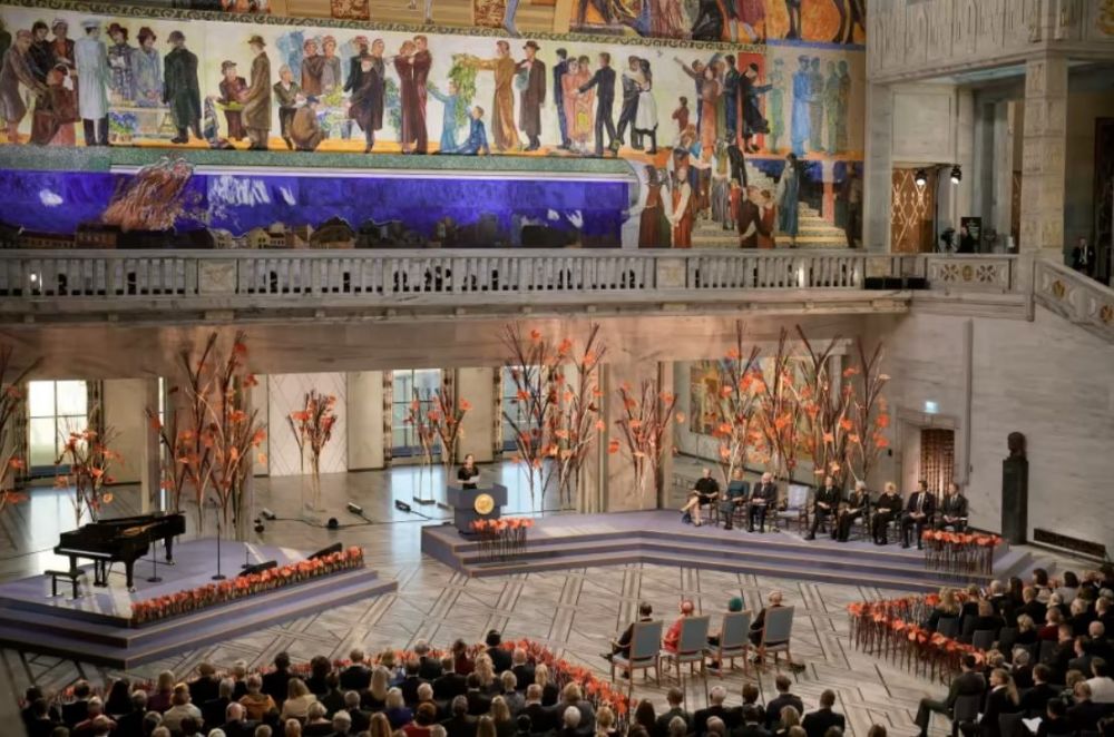 "Ми отримали Нобелівську премію миру під час війни, яку розпочала росія. Ця війна триває вже 8 років, 9 місяців і 21 день. Для мільйонів людей стали звичними такі слова, як обстріли, катування, депортації, фільтраційні табори. Але немає таких слів, щоб передати біль матері, яка втратила новонародженого сина, яка втратила сина після обстрілу пологового відділення лікарні… Цього року оголошення премії миру чекала вся Україна. Ми розцінюємо її як визнання зусиль усього українського народу, що сміливо вистояв проти спроб зруйнувати мирний розвиток Європи..."